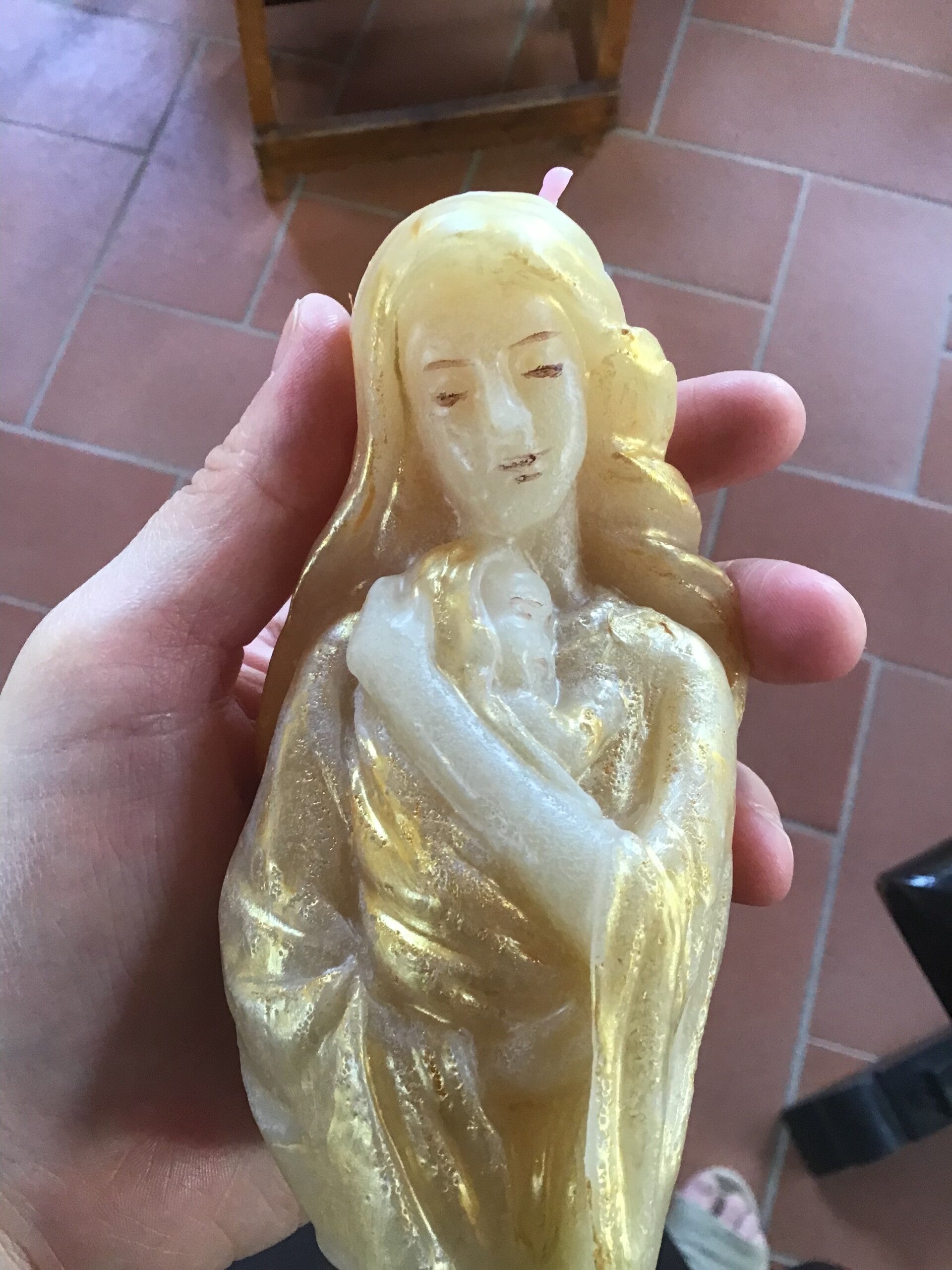 Candela artigianale - Madonna con il Bambino - Beige Oro